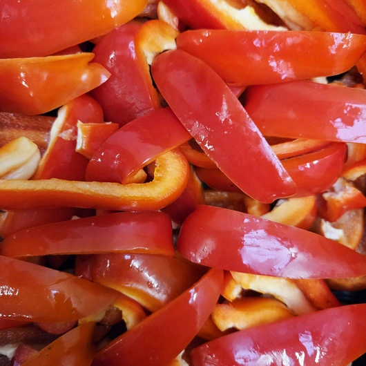 Peberfrugt rød i stave 20mm håndskåret, 5 kg