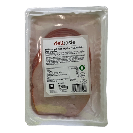 Kalkunbryst m/paprika i skiver, ca. 25, Halal , 500 g