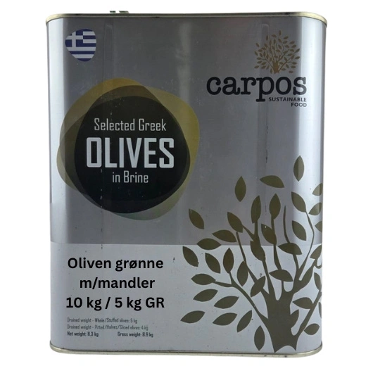 Oliven grønne m/mandler, 8 kg / 5 kg
