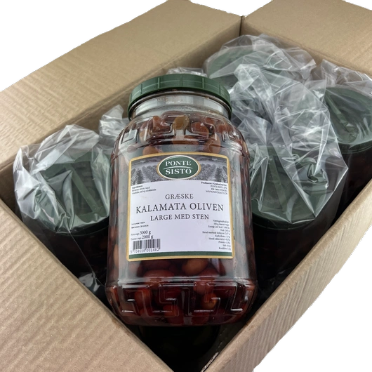 Oliven kalamata m/sten Jumbo, 6*3 kg / 2kg